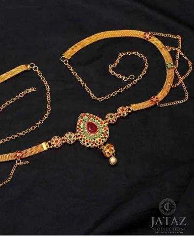 GOLDEN BELT WITH MAROON AND GREEN STONE
