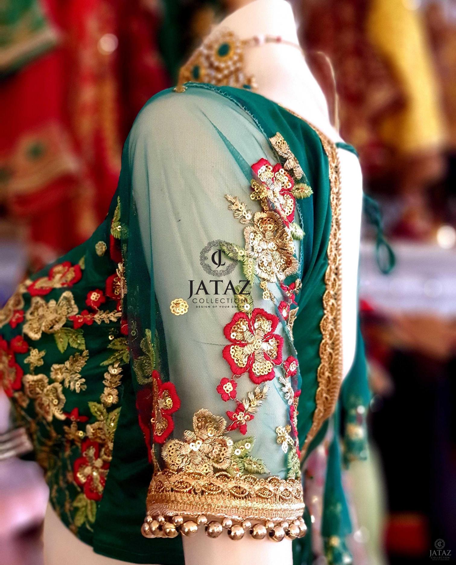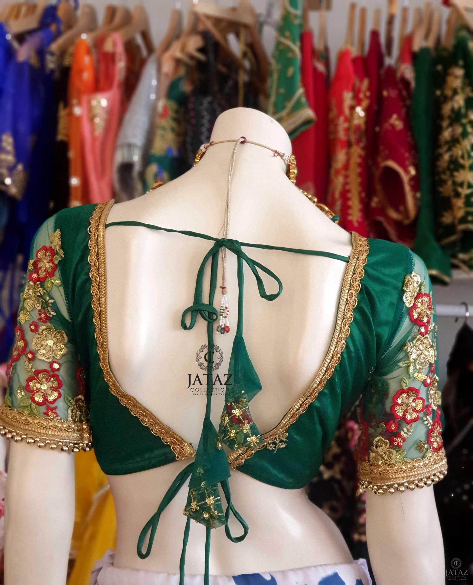 BEAUTIFUL DARK GREEN BLOUSE WITH ALL OVER THREAD AND SEQUENCE WORK
