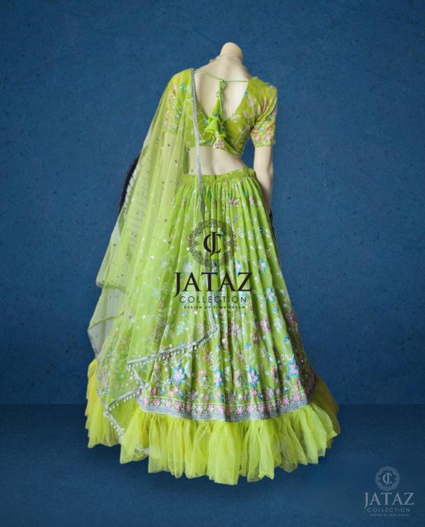 DESIGNER 3 PIECE GREEN LEHENGA SET
