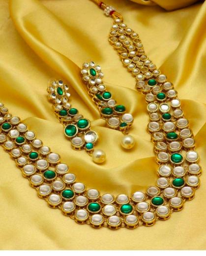 Green Color Kundan Necklace Set