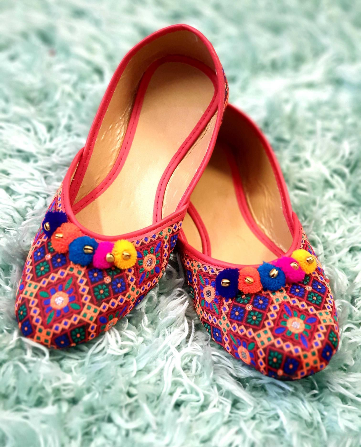 Multicolor jutti with pom pom