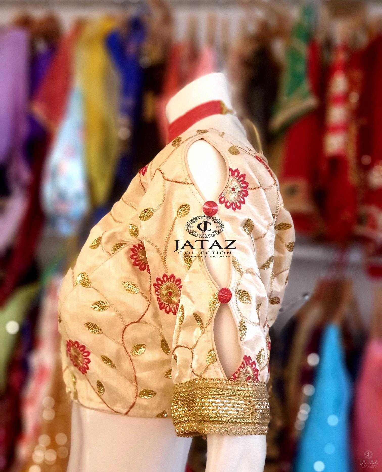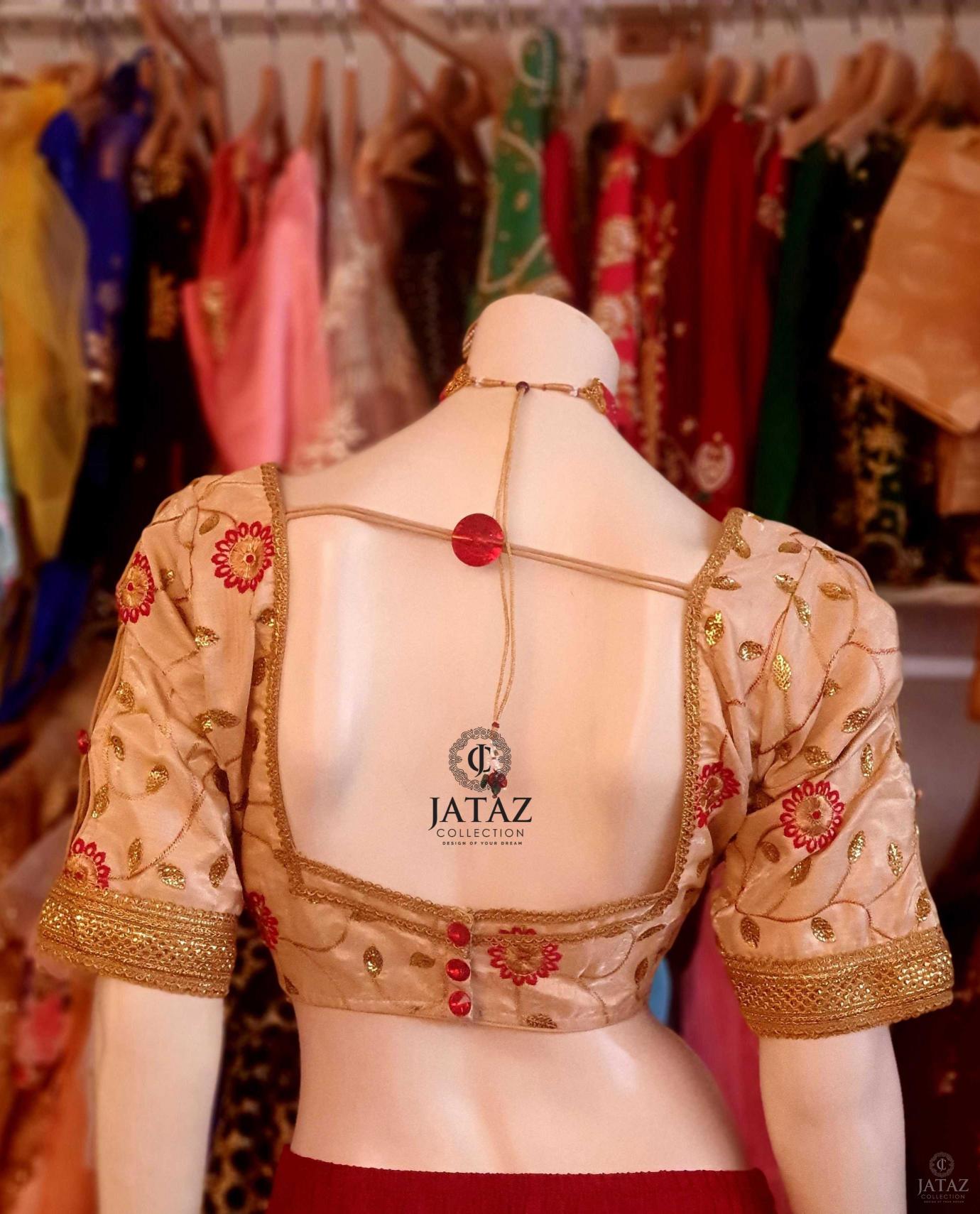 DESIGNER GOLDEN BROKET BLOUSE WITH BEAUTIFUL NECKLINE AND SLEEVE DESIGNS