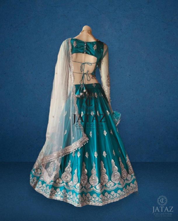JATAZ PRESENTS 3 PIECE BLUISH GREEN LEHENGA SETS WITH ALLOVER SILVER THREAD AND SEQUENCE WORK