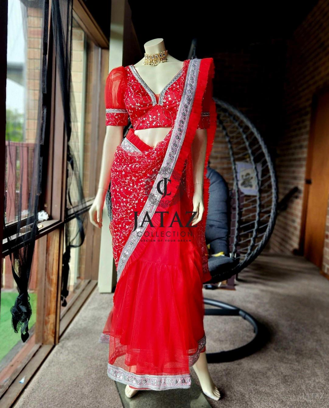 DESIGNER 1 MIN RED SAREE (SA002)