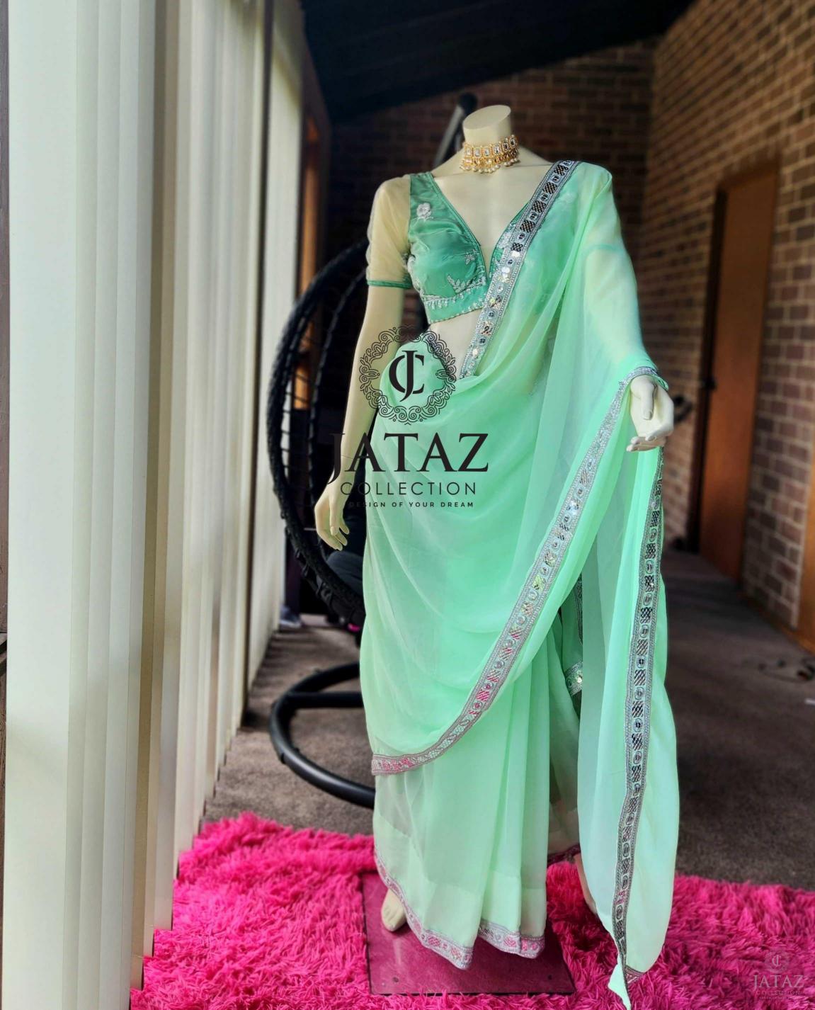 DESIGNER MINT GREEN SAREE SET (SA0018)